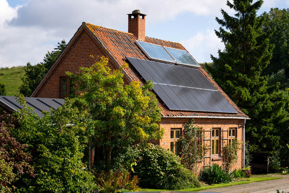 Solceller monteret på taget af hus.